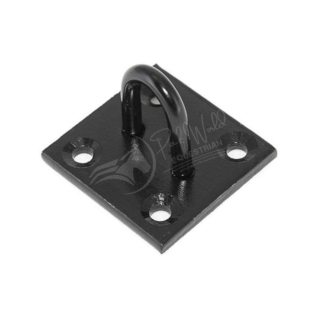 Staple 6mm on a pre-drilled plate 50 x 50mm (2 x 2 in). Black Japanned for increased durability.