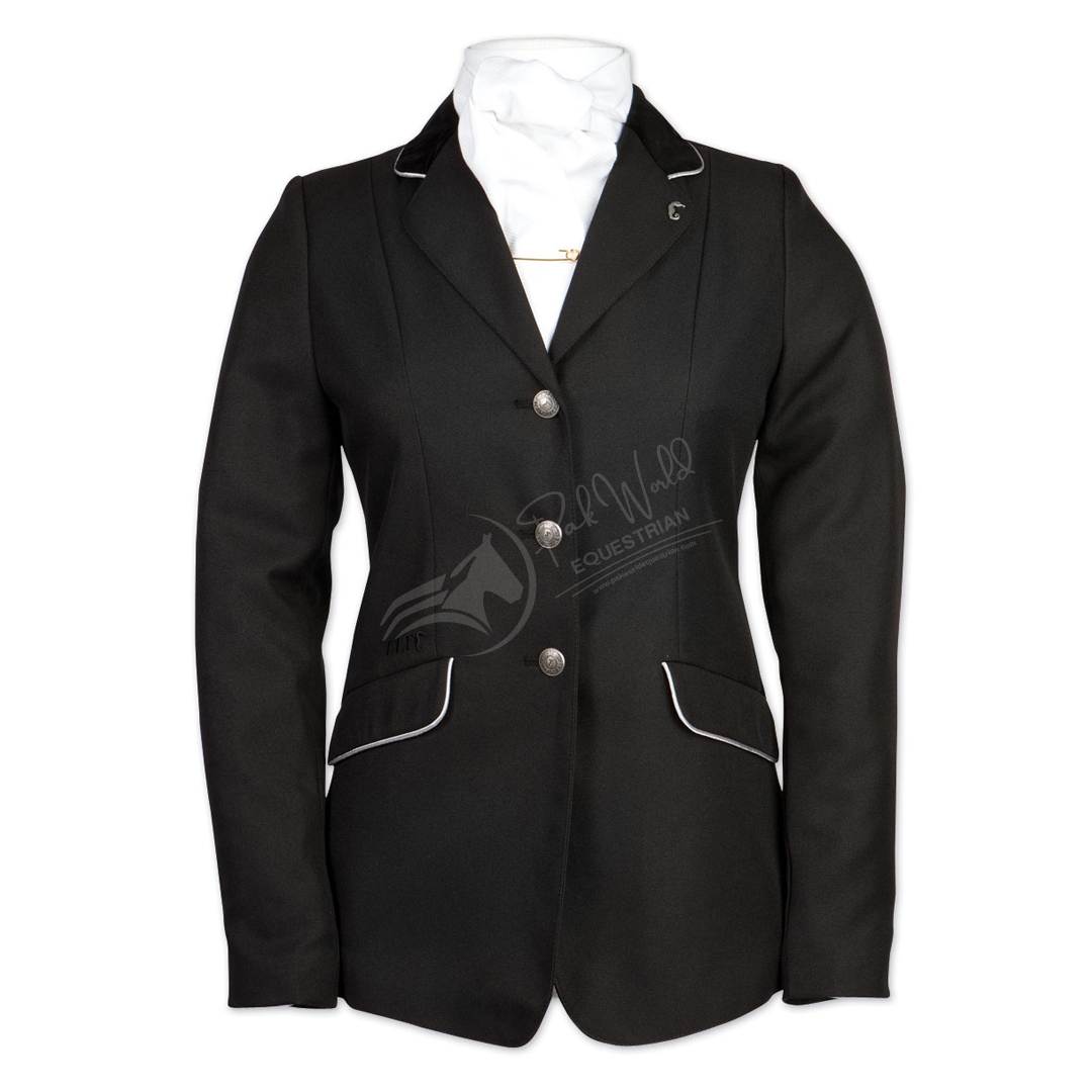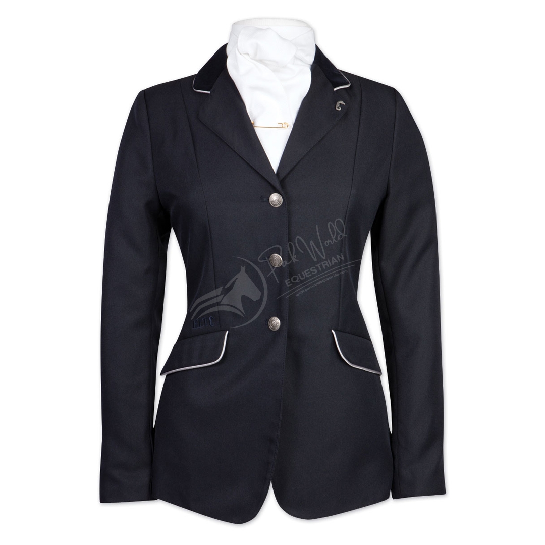 The Dressage Coat is an elegantly styled dressage coat. It’s made with a velvet collar and pocket flaps with fine silver piping. Tailored cut with stylish buttons. For best care, dry clean only.